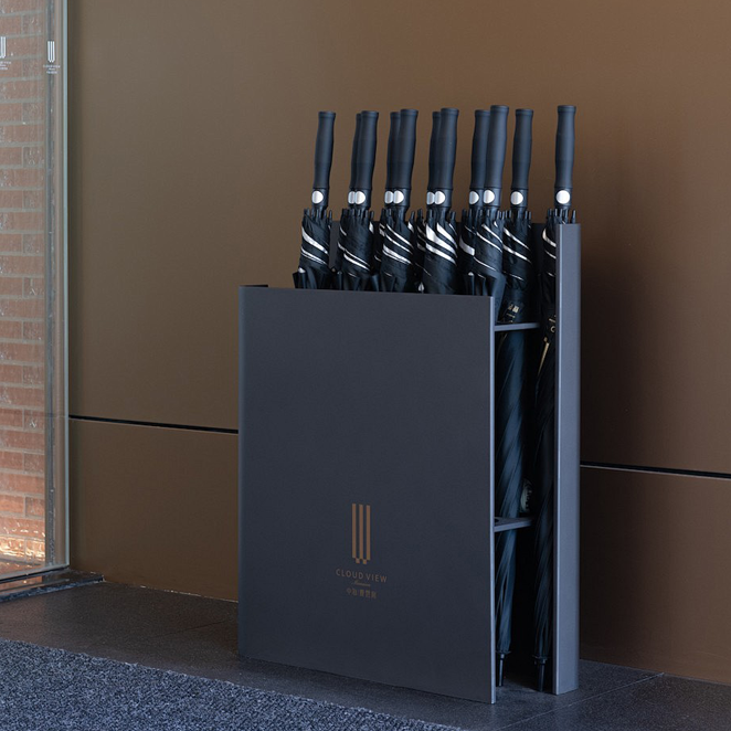 By providing multiple umbrella compartments (such as 12 to 36 head capacity), umbrellas can be stored in an orderly manner, avoiding cluttered stacking and improving space utilization. For example, foldable umbrella racks can hang 40-50 umbrellas at the same time, suitable for high-frequency use places such as classrooms.