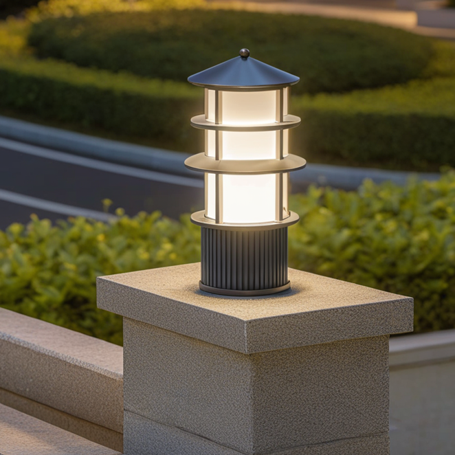 Column head lights are often installed on pillars that enter the courtyard or create a sense of landscape sequence. Their unique shape enriches the design of the courtyard facade, not only providing lighting but also serving a good decorative purpose.