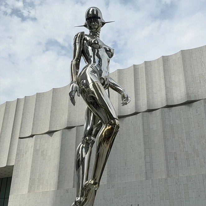 First, make the clay draft of the sculpture, then turn it intoa plaster or silicone mold, andthen cast it into a stainless steel sculpture using the lost wax method. It is suitable forcreating works with complex shapes and rich details.